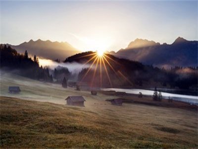 太阳落下山去,月亮高挂天边。